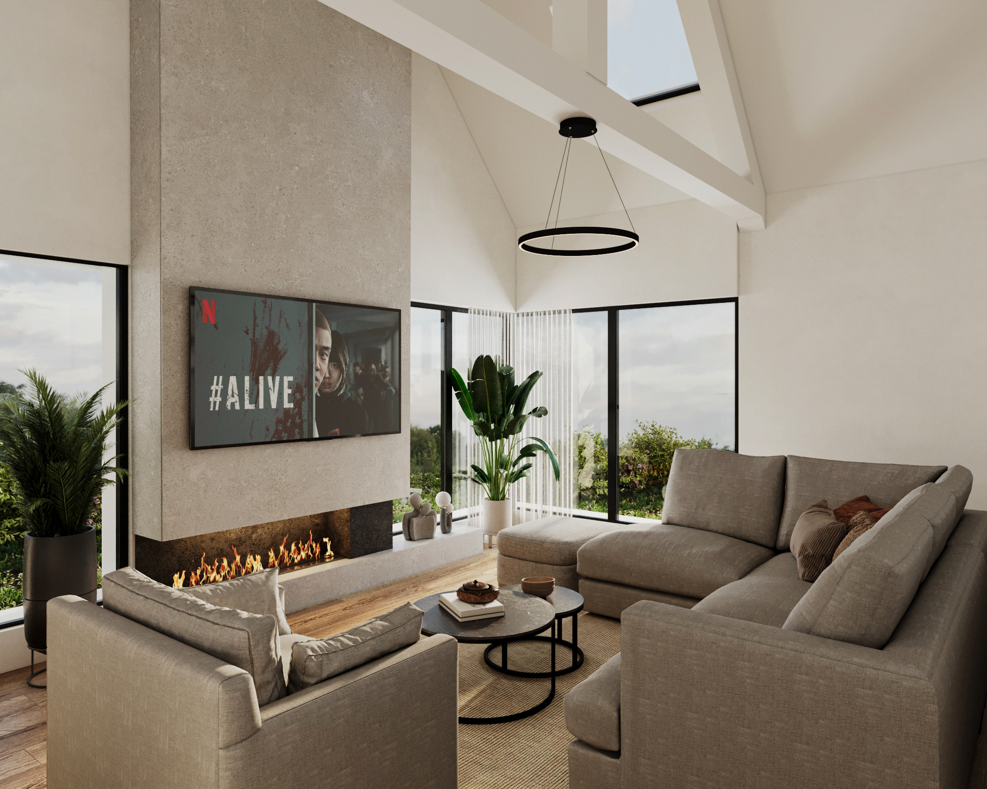 Design of various interior spaces with high attention to quality and detail, using real products defined through purchase lists and selected items, with walk-through options supported by natural lighting and realistic material selection.