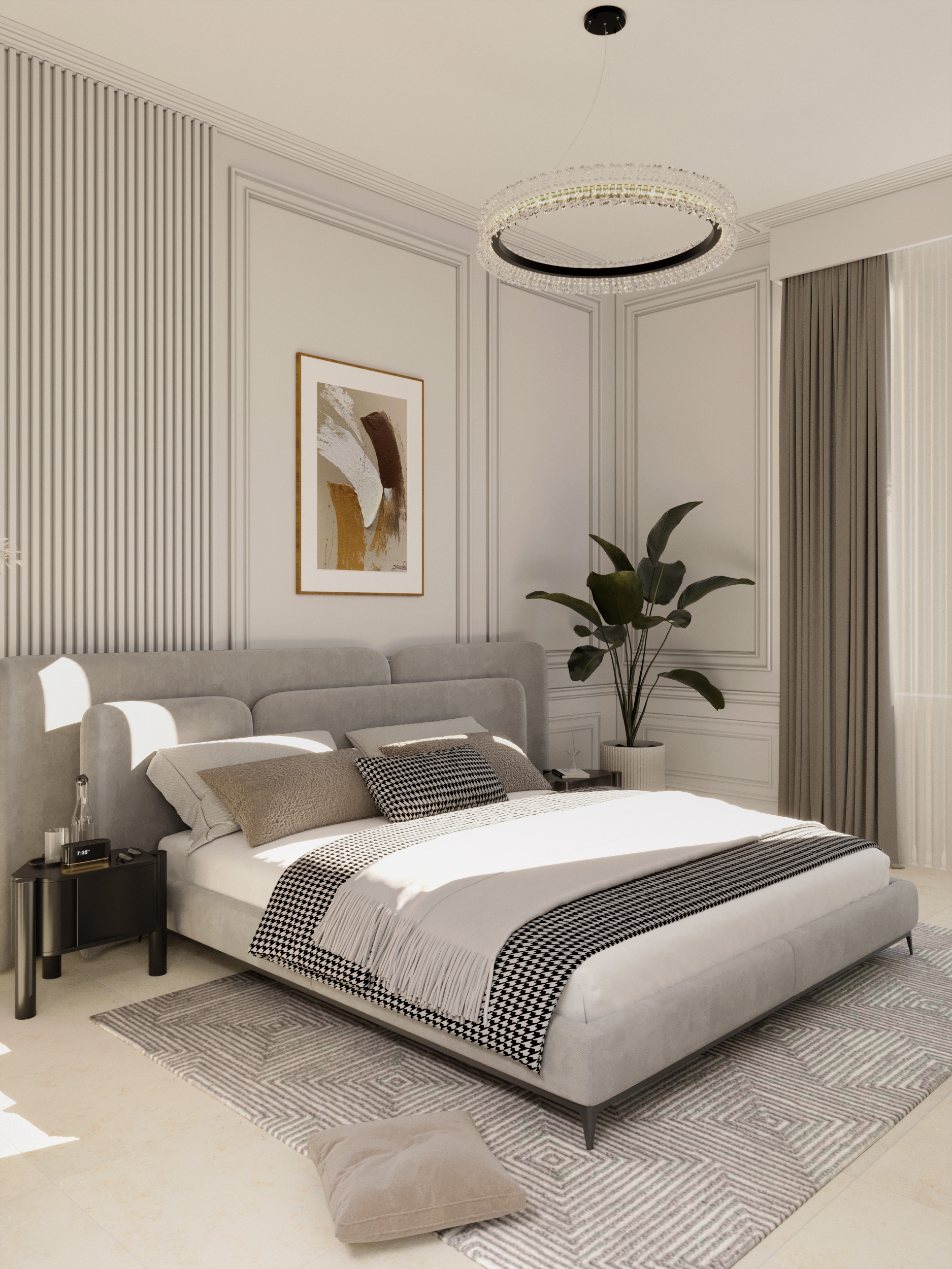 Master bedroom redesign developed with minimal reconstruction, based on the client’s preferences for furniture models and wardrobe style.