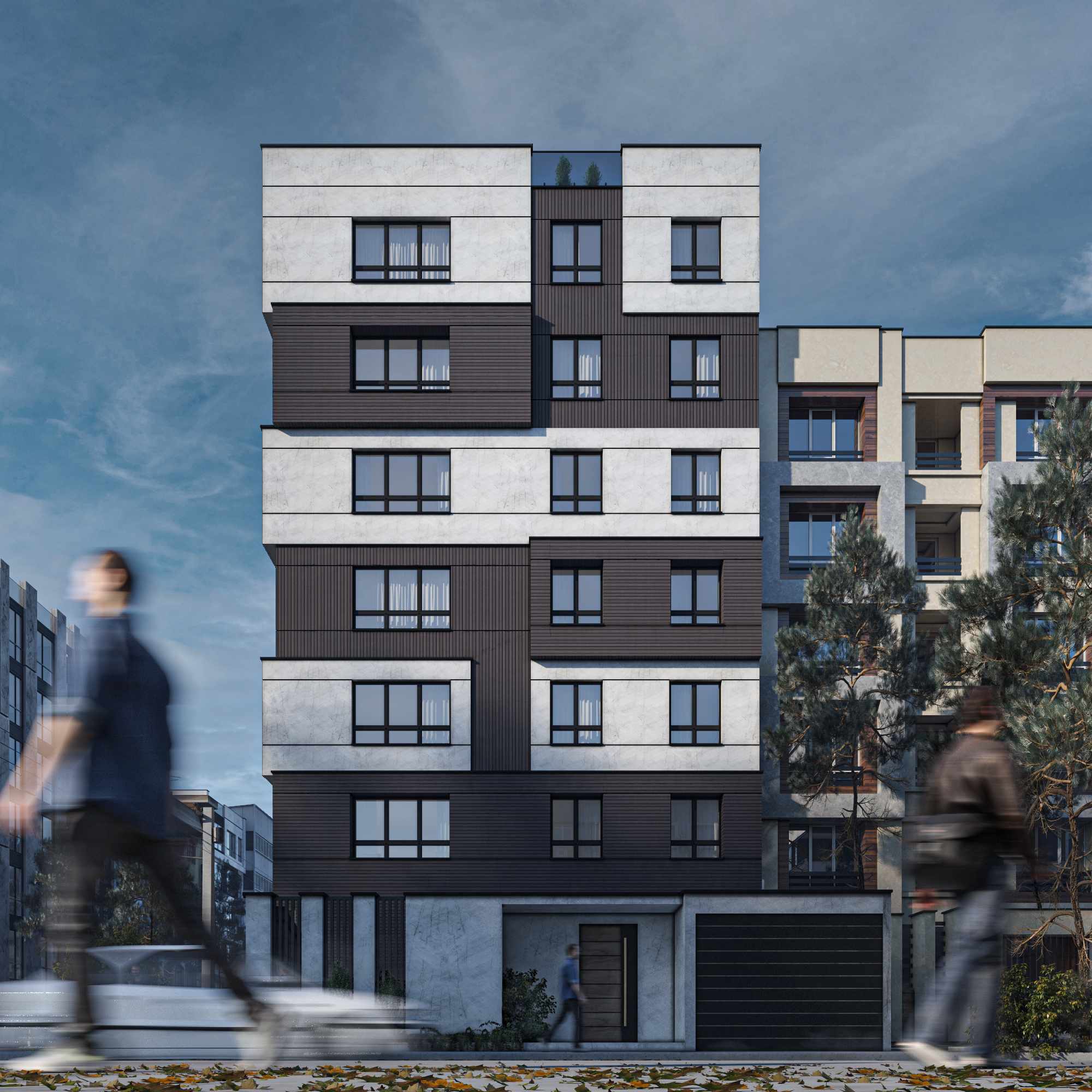 Facade redesign developed to achieve a modern elevation, focused on material updates and architectural lighting.